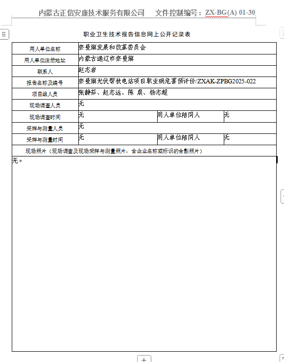 >>项目公示>>奈曼旗光伏帮扶电站项目职业病防护设施设计专篇