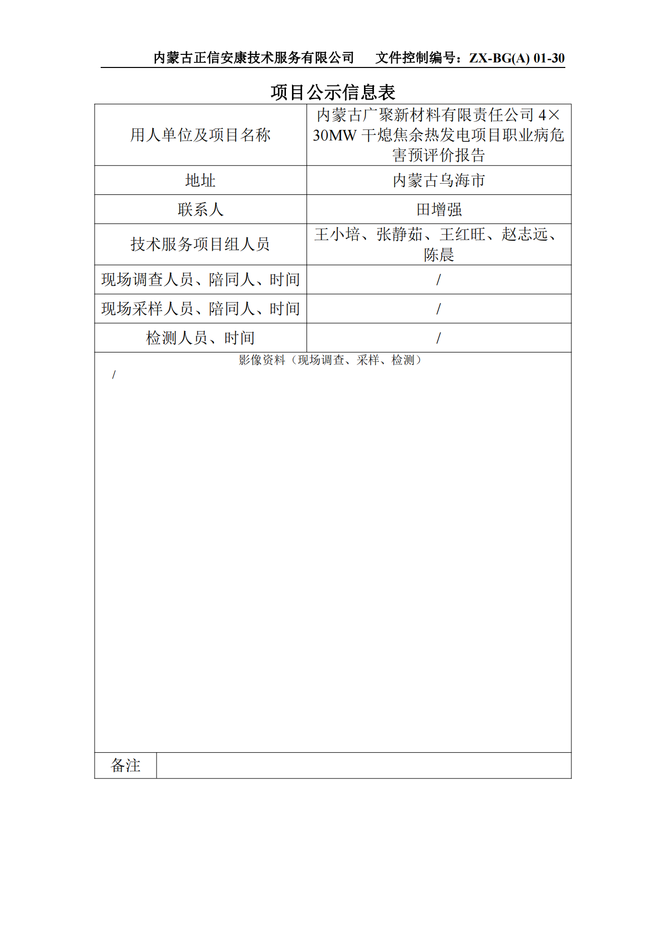 >>项目公示>>内蒙古广聚新材料有限责任公司4×30MW干熄焦余热发电项目职业病危害预评价