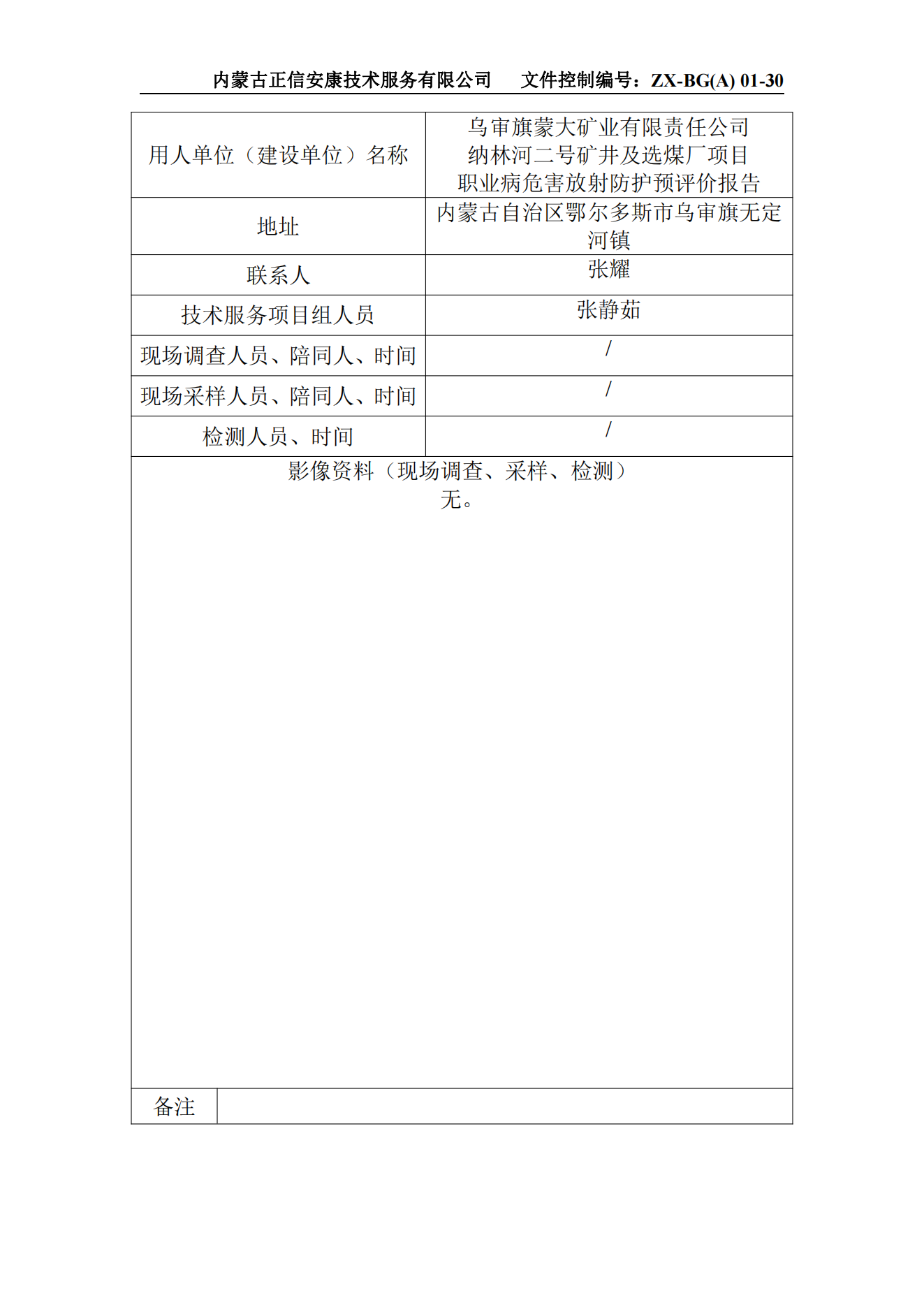 乌审旗蒙大矿业有限责任公司纳林河二号矿井及选煤厂项目职业病危害放射防护预评价