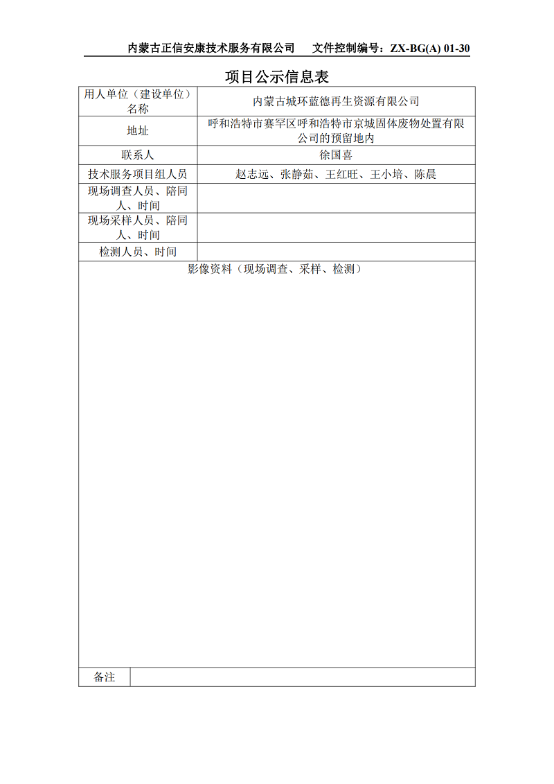 >>项目公示>>呼和浩特市餐厨垃圾处理工程项目职业病危害预评价报告项目公示信息表