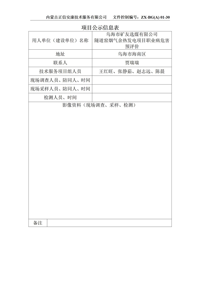 >>项目公示>>矿友余热发电预评项目公示信息表