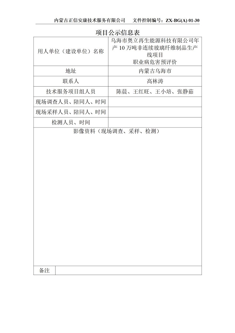 >>项目公示>>奥立10万吨非连续玻璃纤维(预评)项目公示信息表_