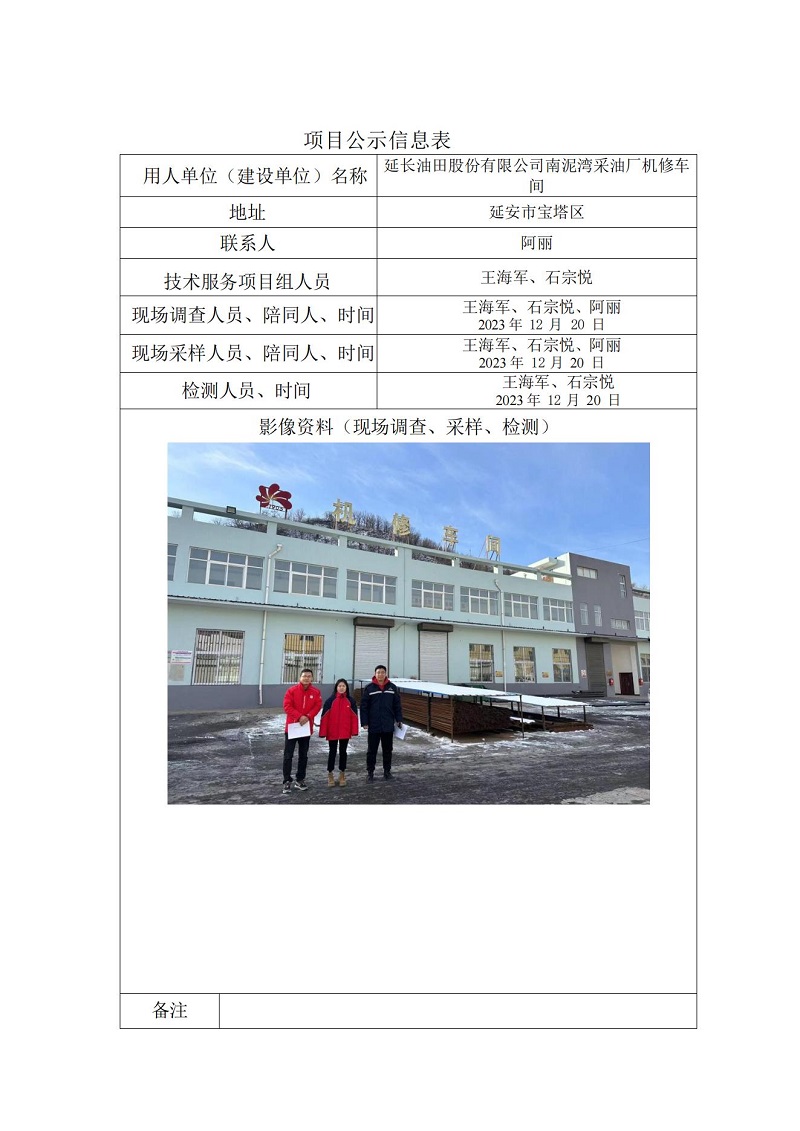 >>项目公示>>延长油田股份有限公司南泥湾采油厂机修车间