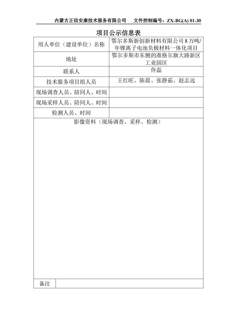 >>项目公示>>鄂尔多斯市新创8万吨锂离子负极材料一体化项目预评公示信息表