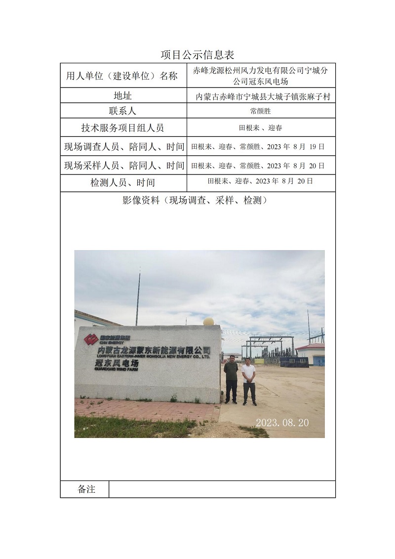 >>项目公示>>赤峰龙源松州风力发电有限公司宁城分公司冠东风电场