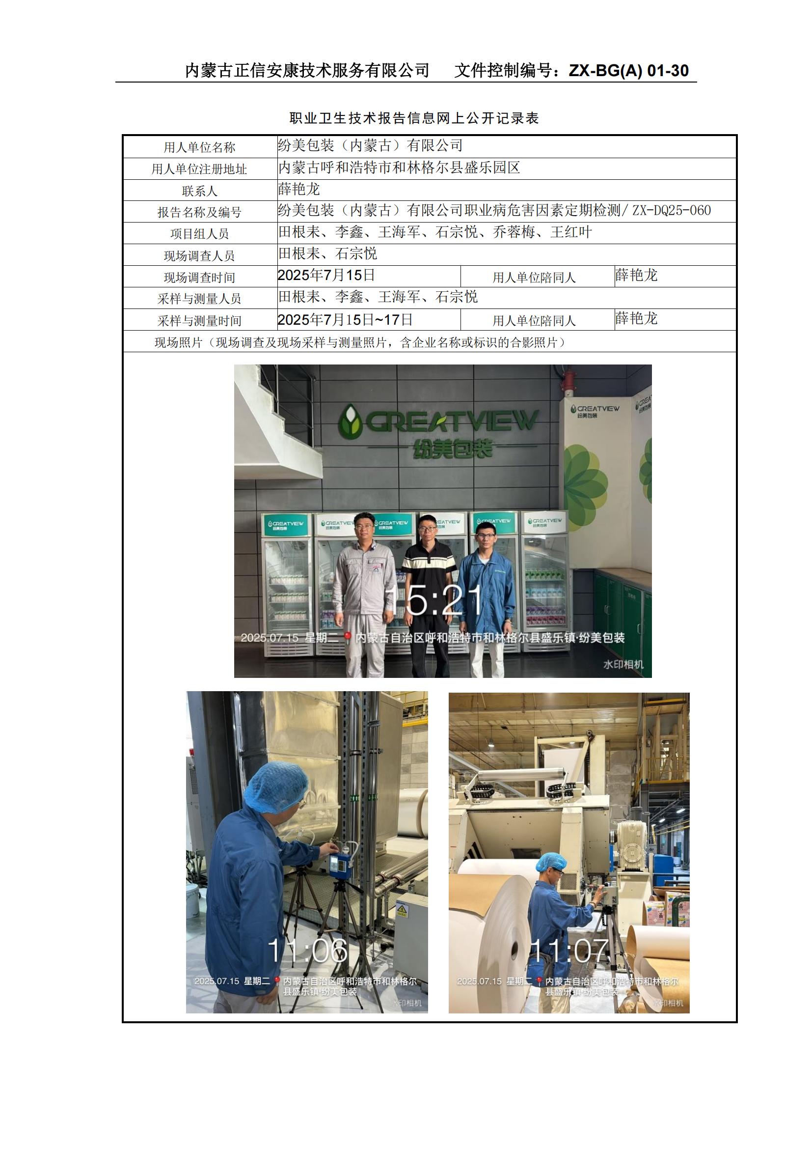 纷美包装(内蒙古)有限公司职业病危害因素定期检测