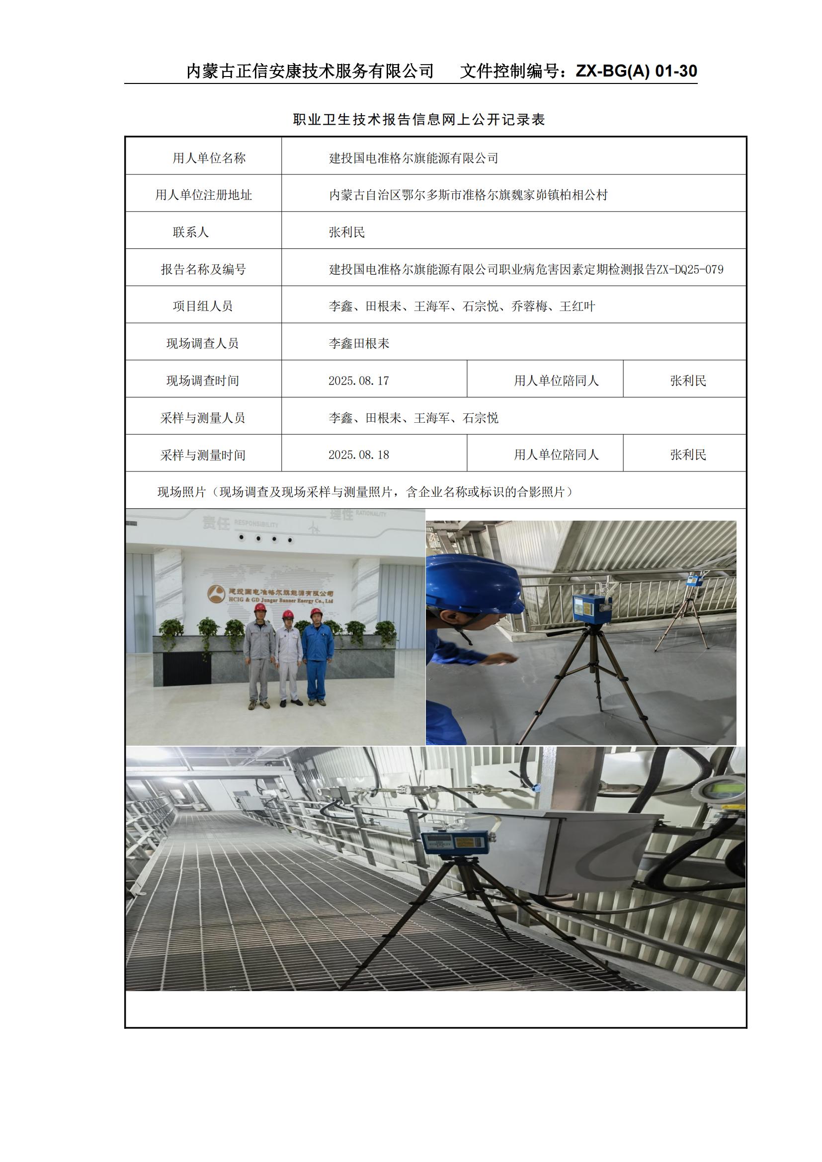 建投国电准格尔旗能源有限公司职业病危害因素定期检测