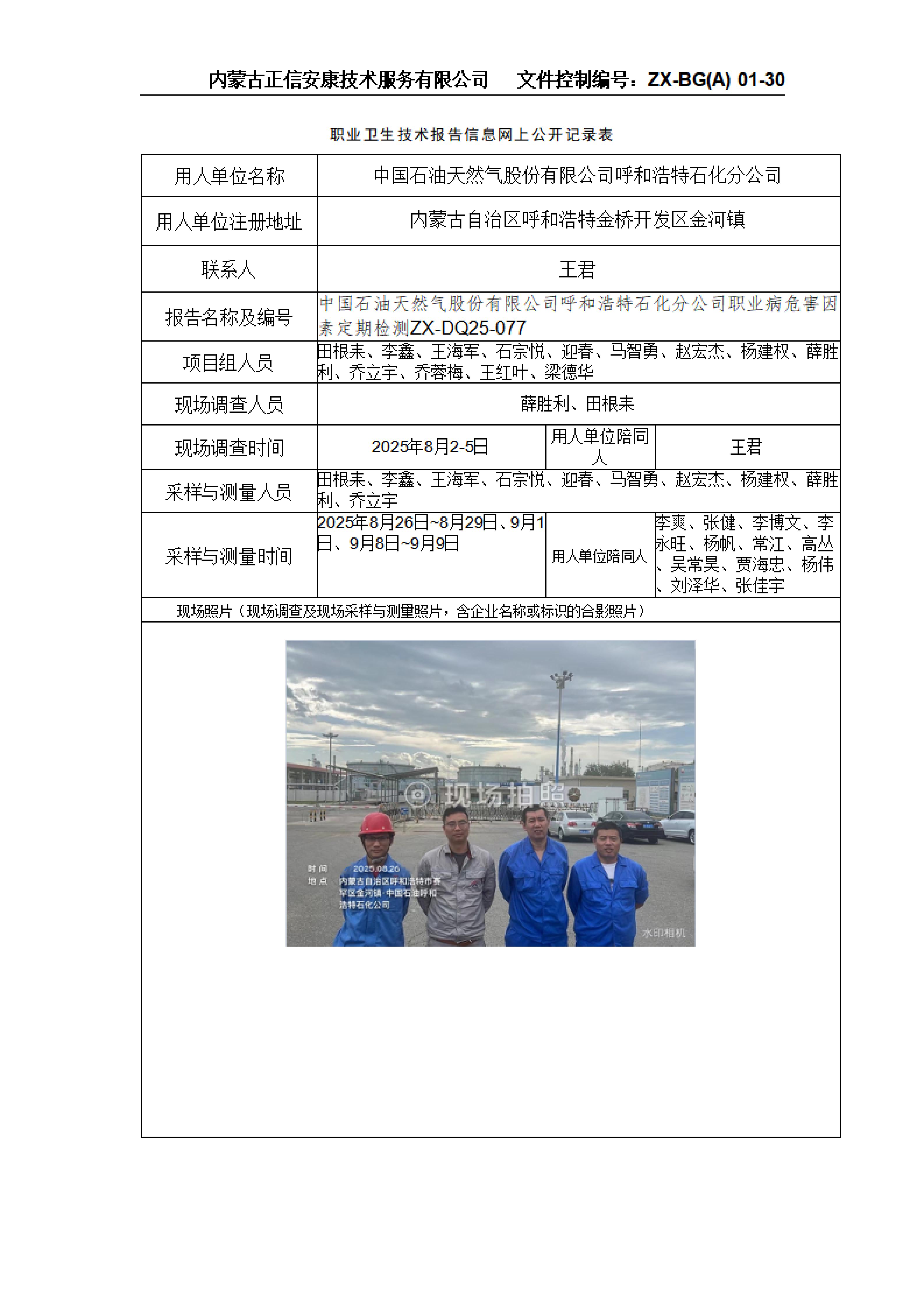 中国石油天然气股份有限公司呼和浩特石化分公司职业病危害因素定期检测