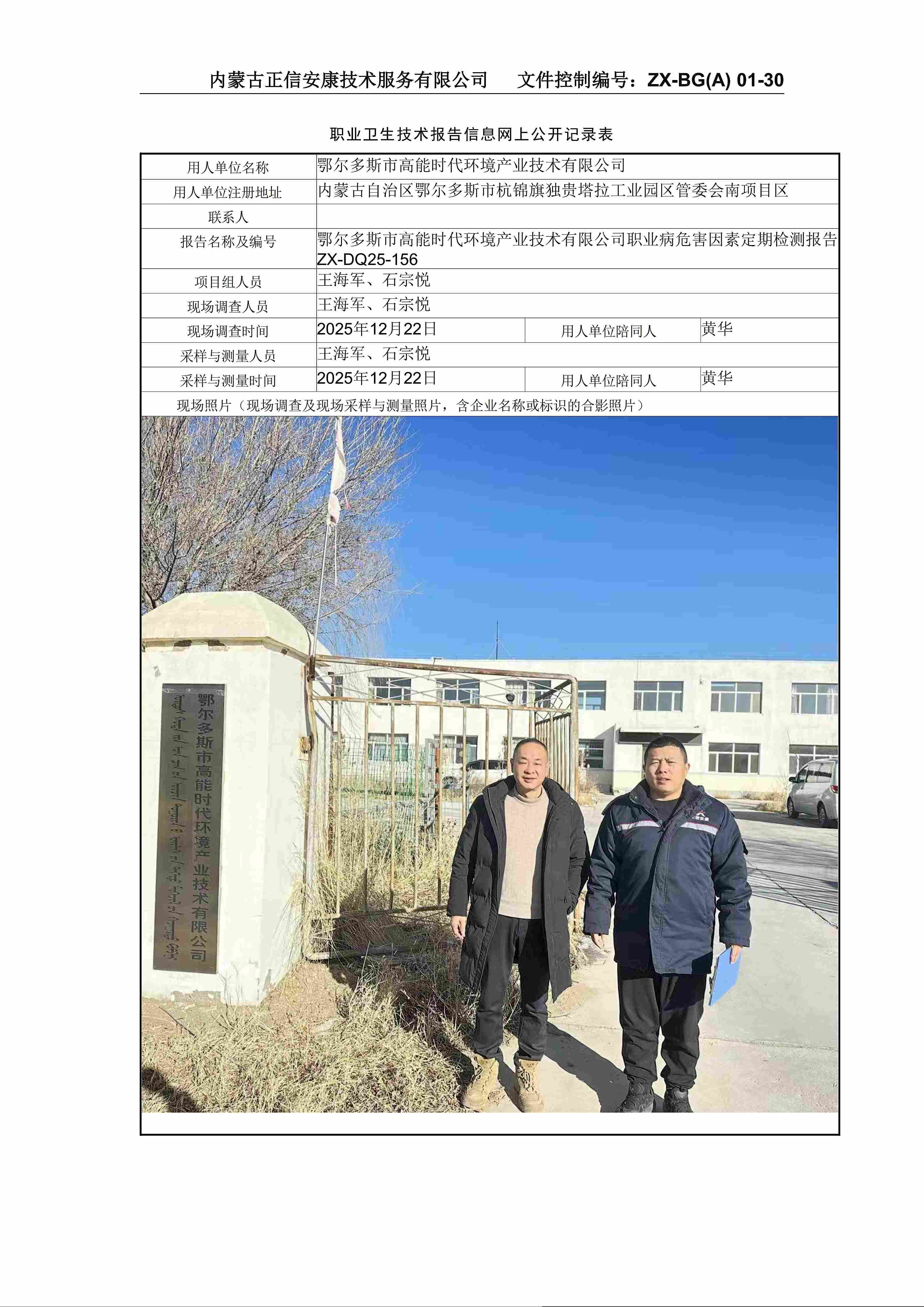 鄂尔多斯市高能时代环境产业技术有限公司职业病危害因素定期检测报告