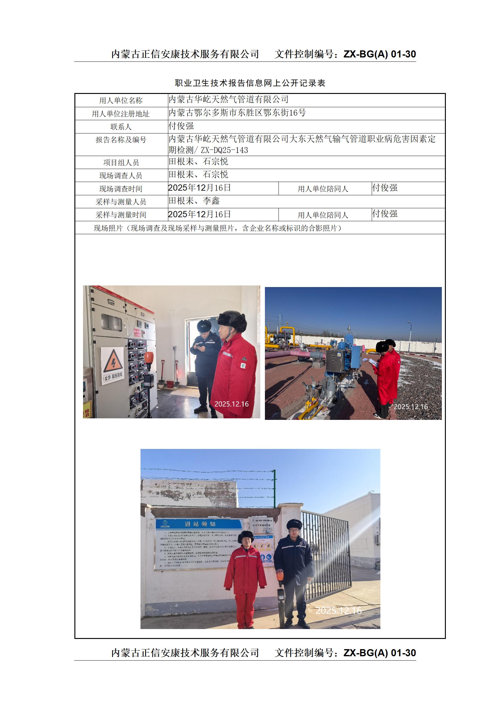 内蒙古华屹天然气管道有限公司大东天然气输气管道职业病危害因素定期检测