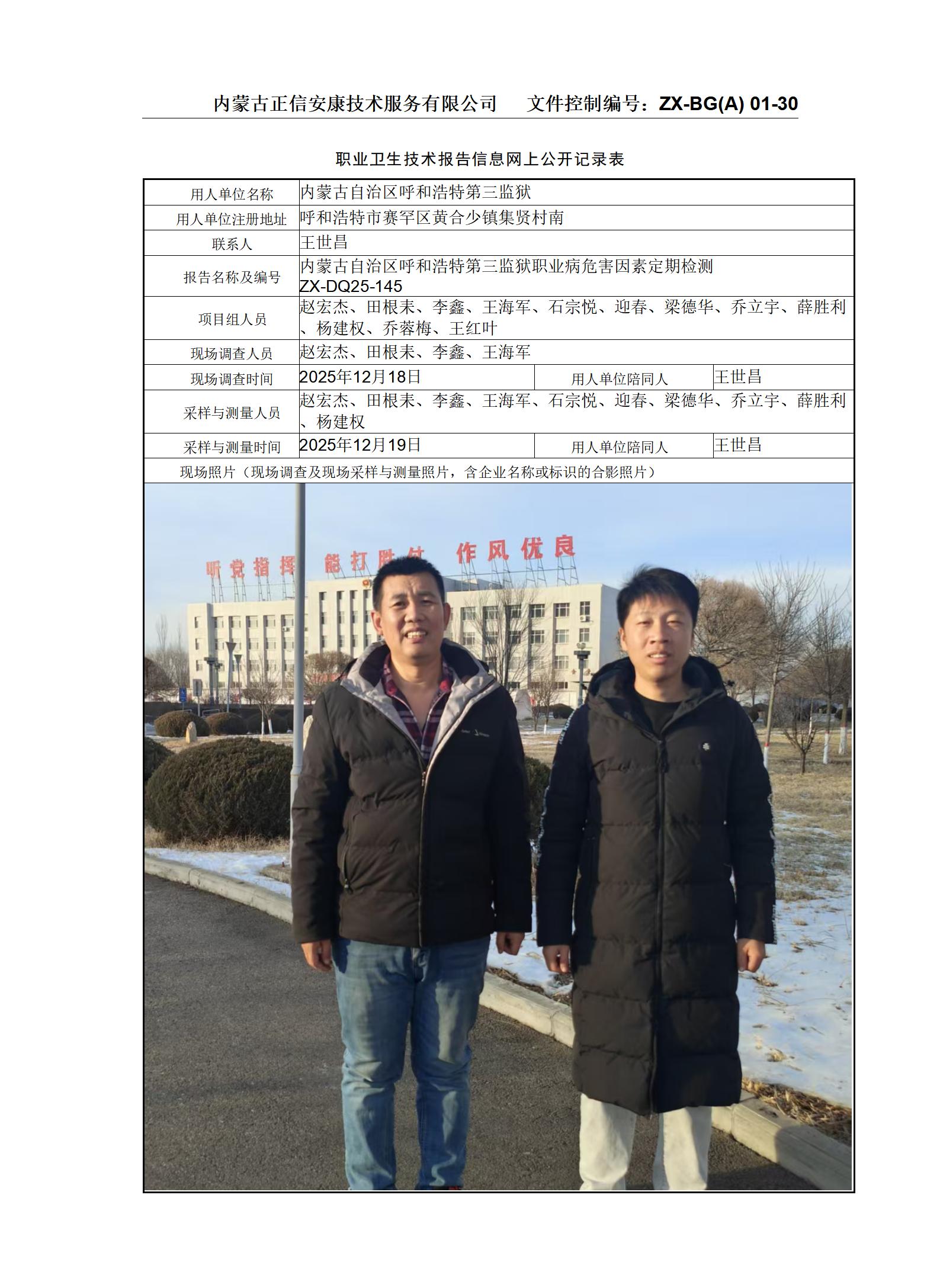 >>项目公示>>内蒙古自治区呼和浩特第三监狱职业病危害因素定期检测