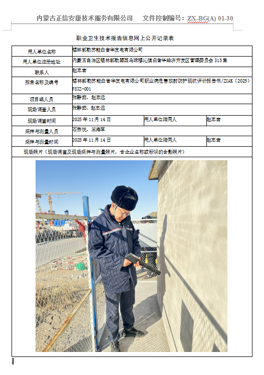 锡林郭勒苏能白音华发电有限公司职业病危害放射防护现状评价报告书
